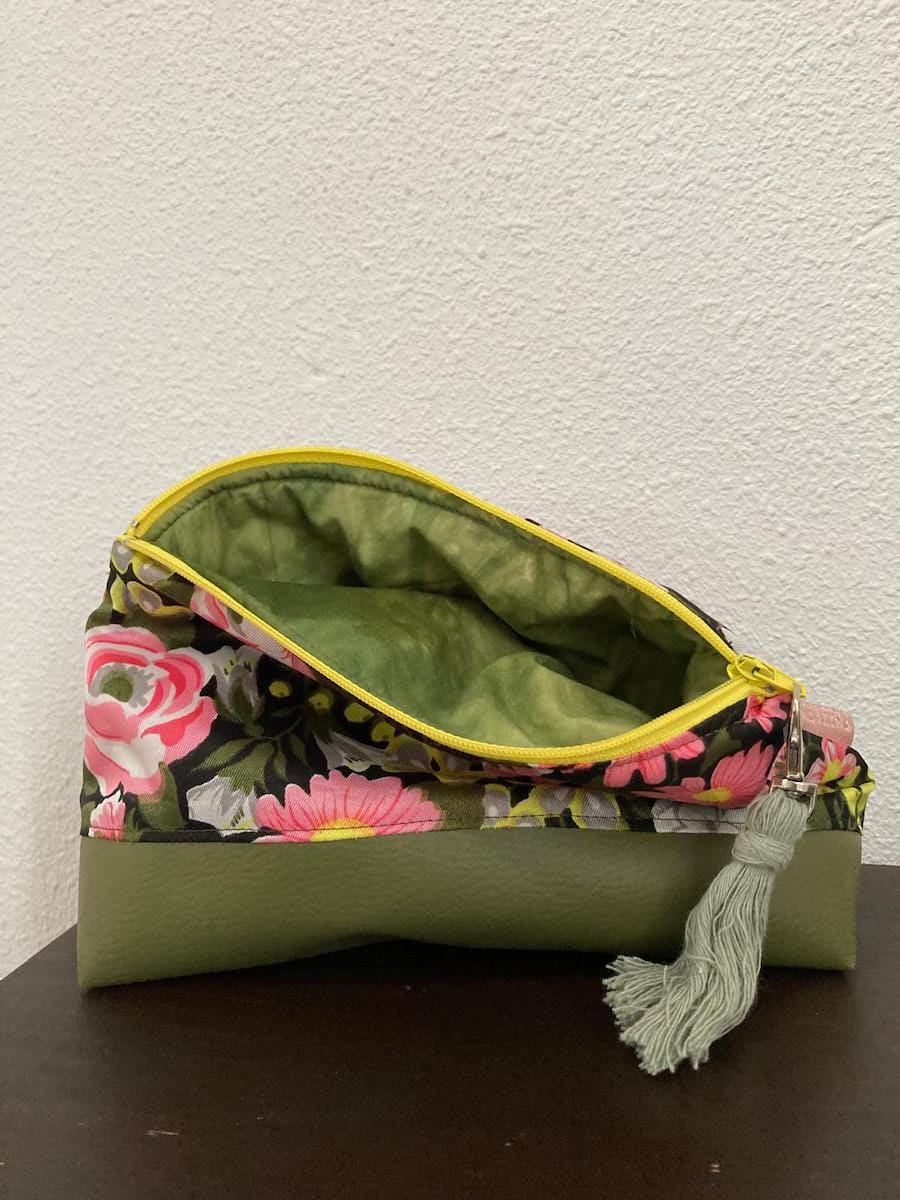 Deze make-up tas uitgevoerd in legergroen kunstleer en katoenen bloemenprint is de perfecte etui voor jouw mooimakers. Neem je mascara, rouge en lippenstift mee in dit handige make-up tasje. Of ben je op zoek naar een vrouwelijk en stoer tasje om jouw maandelijkse verzorgingsproducten in mee te nemen?