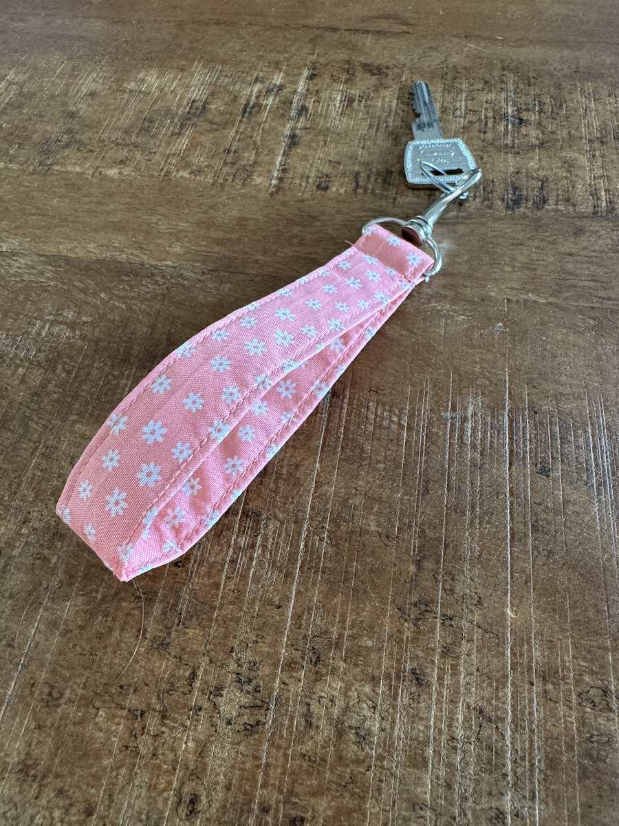 Deze vrolijke polssleutelhanger is ideaal voor liefhebbers van roze en een vrolijke bloemenprint. Handgemaakt door Craftketeers. De sleutelhanger heeft een handige clip die je makkelijk aan en van je sleutelbos kunt klippen. Geen gedoe met die lastige ringen, waarmee jij je nagels beschadigd.